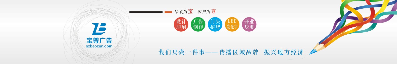蘇州寶尊廣告有限公司是一家集廣告設(shè)計(jì)、廣告制作、廣告印刷、展示器材、標(biāo)識字牌、禮儀慶典、代理發(fā)布服務(wù)于一體的綜合性廣告公司。注冊資金100萬元,可為工廠公司、商場旅業(yè)、媒體策劃等眾多企業(yè)提供多方面的廣告服務(wù)。我們具有一支從事廣告行業(yè)多年,設(shè)計(jì)制作施工團(tuán)隊(duì)人員,憑著“品質(zhì)為寶、客戶為尊”的經(jīng)營理念,用技術(shù)和服務(wù),讓客戶用的成本獲得利益,贏得了廣大客戶的信任和支持...... [閱讀詳情]